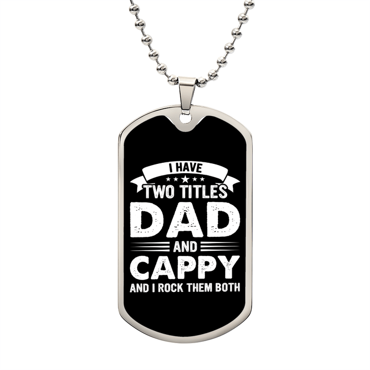 I Have Two Titles Dad and Cappy And I Rock Them Both Dog Tag Necklace - Fathers Day Gift for Cappy - Personalized Cappy Birthday Gift