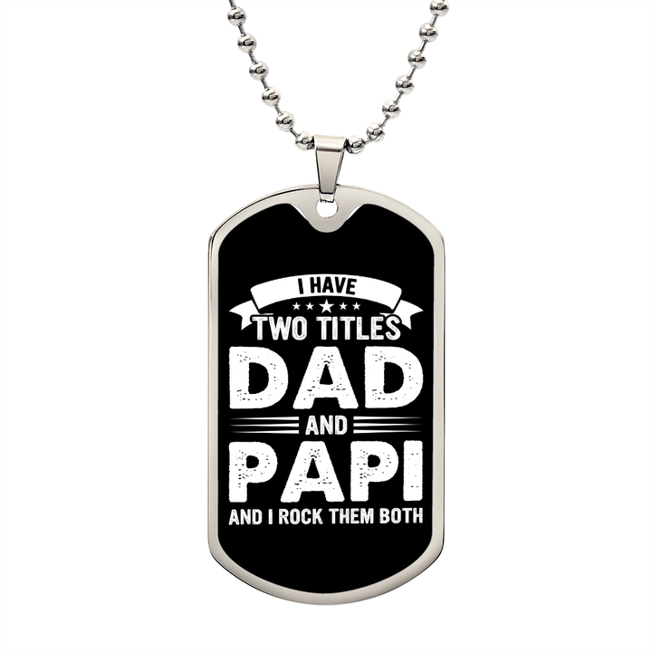 I Have Two Titles Dad and Papi And I Rock Them Both Dog Tag Necklace - Fathers Day Gift for Papi - Personalized Papi Birthday Gift
