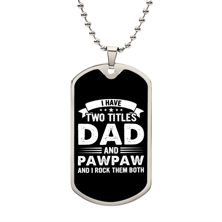 I Have Two Titles Dad and Pawpaw And I Rock Them Both Dog Tag Necklace - Fathers Day Gift for Pawpaw - Personalized Pawpaw Birthday Gift