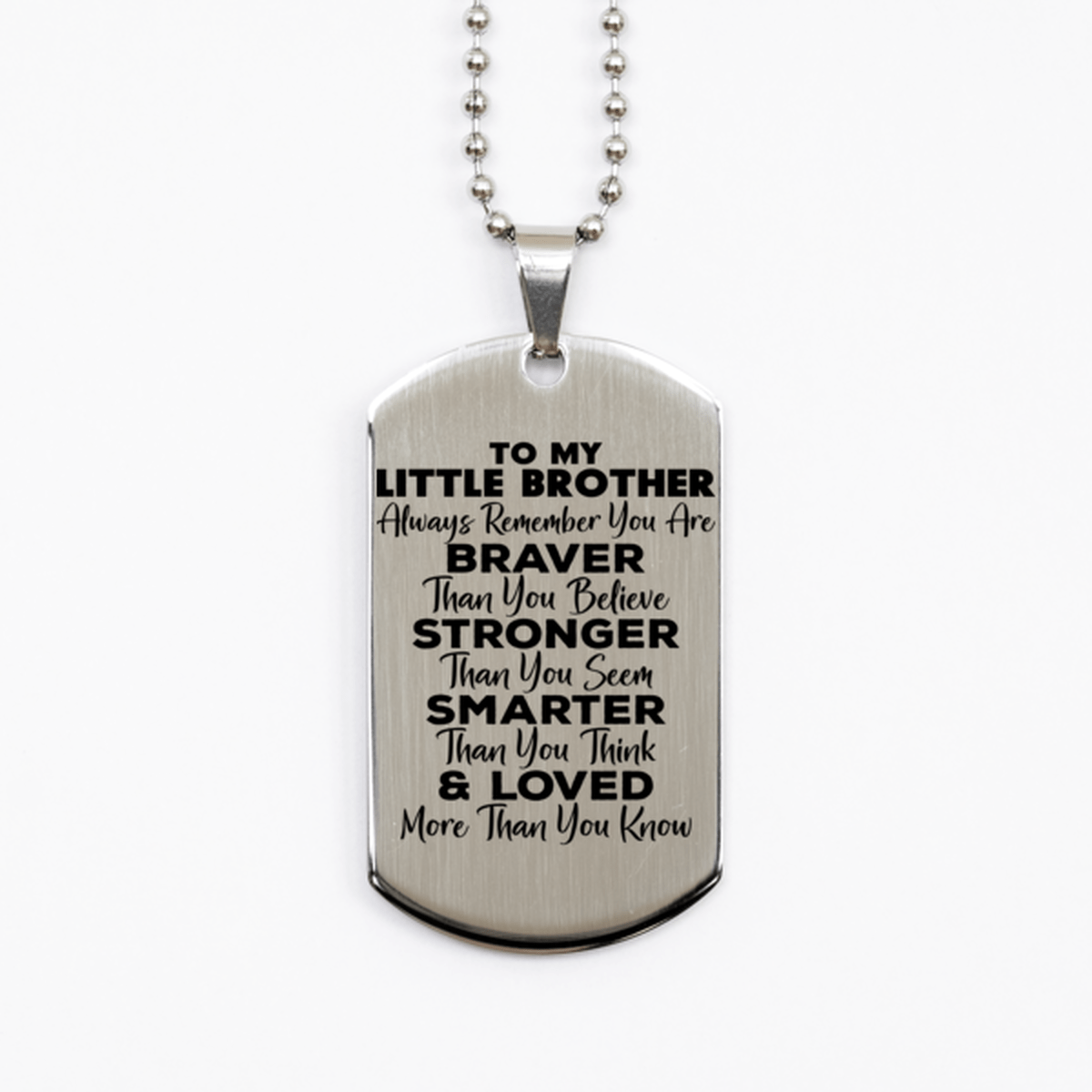 Motivational Little Brother Silver Dog Tag Necklace, Little Brother Always Remember You Are Braver Than You Believe, Best Birthday Gifts for Little Brother