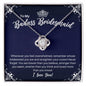 Imagine her reaction receiving this beautiful Love Knot Necklace. Representing an unbreakable bond between two souls, this piece features a beautiful pendant embellished with premium cubic zirconia crystals. Surprise your loved one with this gorgeous gift today!