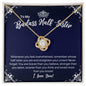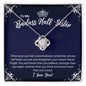 Imagine her reaction receiving this beautiful Love Knot Necklace. Representing an unbreakable bond between two souls, this piece features a beautiful pendant embellished with premium cubic zirconia crystals. Surprise your loved one with this gorgeous gift today!